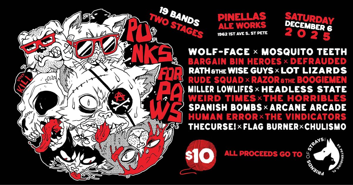 Punks for Paws returns for another year of punk, ska, and hardcore at Pinellas Ale Works to raise money for Friends of Strays Animal Shelter in St. Petersburg, FL.