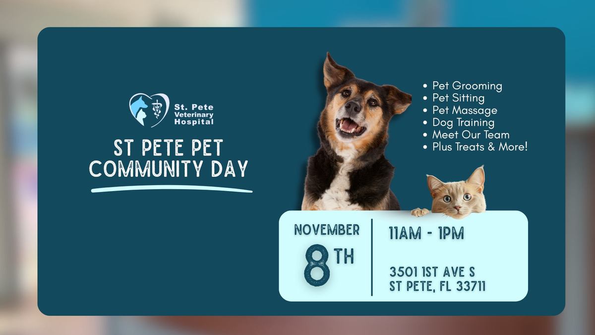 Calling all pet parents! St. Pete Veterinary invites you to our Pet Community Day on Saturday, November 8th, from 11 AM to 1 PM.