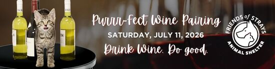 Once again, Friends of Strays has teamed up with Events by the Glass to host a Purrr-Fect Wine Pairing event!